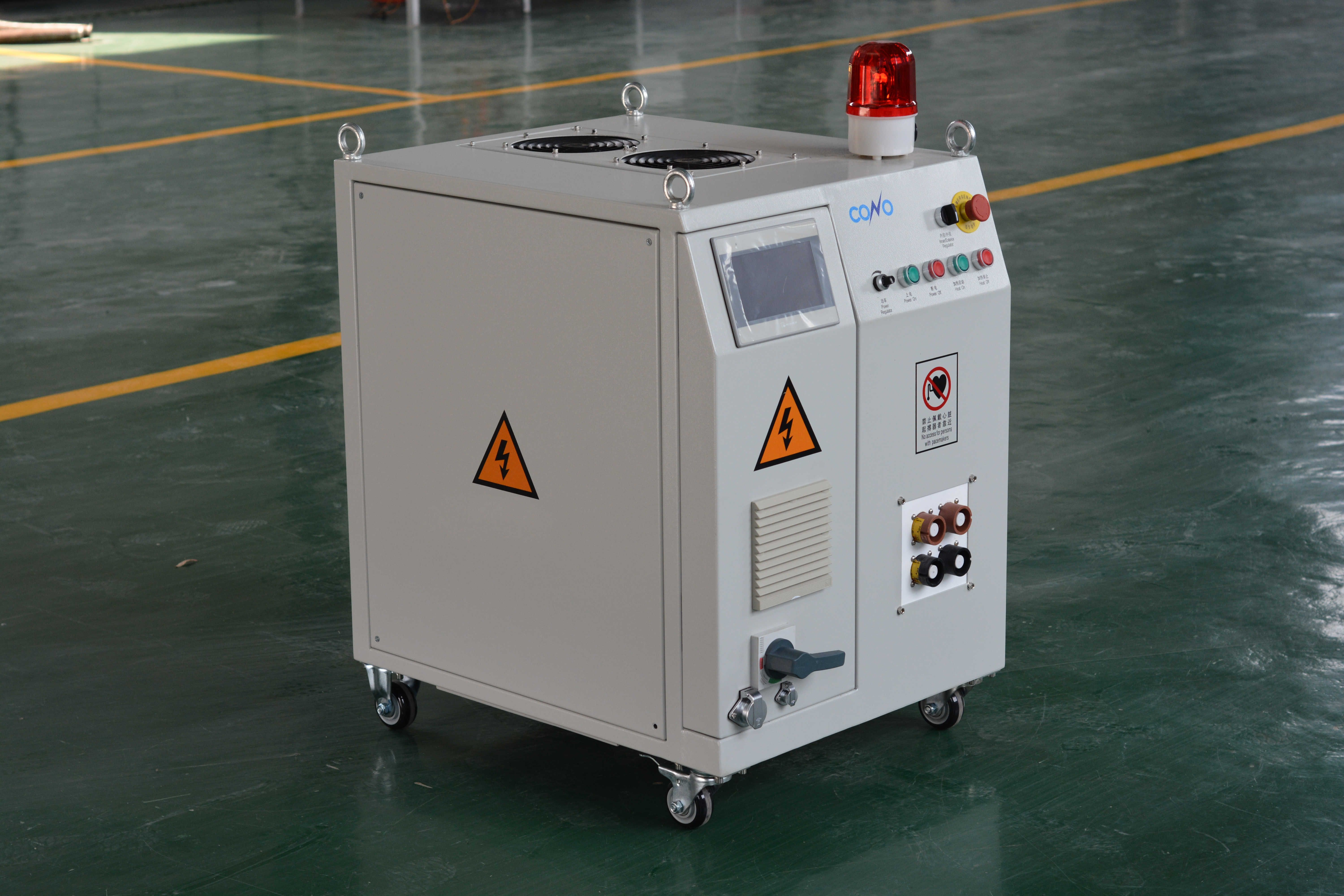 科諾空冷電源頻率范圍1~20kHz,功率范圍30~200kW,不需要冷卻水、能夠連續(xù)長時間工作、控制精度高、適合野外作業(yè),主要應用于石油天然氣管道涂覆加熱、鐵軌焊后熱處理等領(lǐng)域。